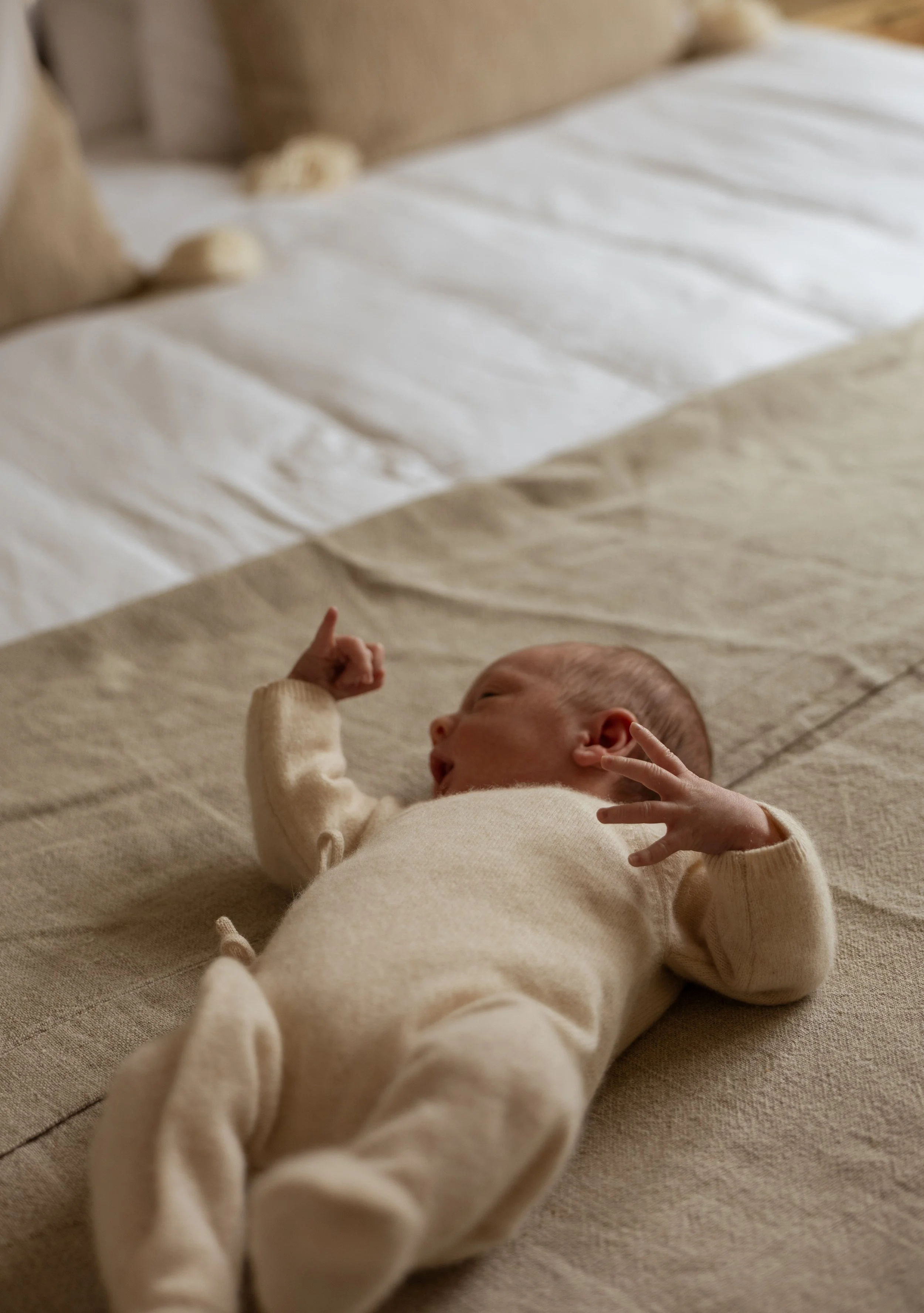De shoot vindt plaats bij jullie thuis, in een vertrouwde en rustige omgeving. Vooraf bespreken we jullie wensen, zodat ik goed weet wat belangrijk is voor jullie. Daarna ontvang je van mij een document met praktische tips, zoals welke kleding goed werkt op beeld, kleine voorbereidingen en een moodboard ter inspiratie. Tijdens de shoot ga ik mee met jullie ritme. Of jullie baby nu wakker is, slaapt, huilt of een flesje krijgt — het hoort er allemaal bij. Juist die echte momenten maken de foto’s zo bijzonder.